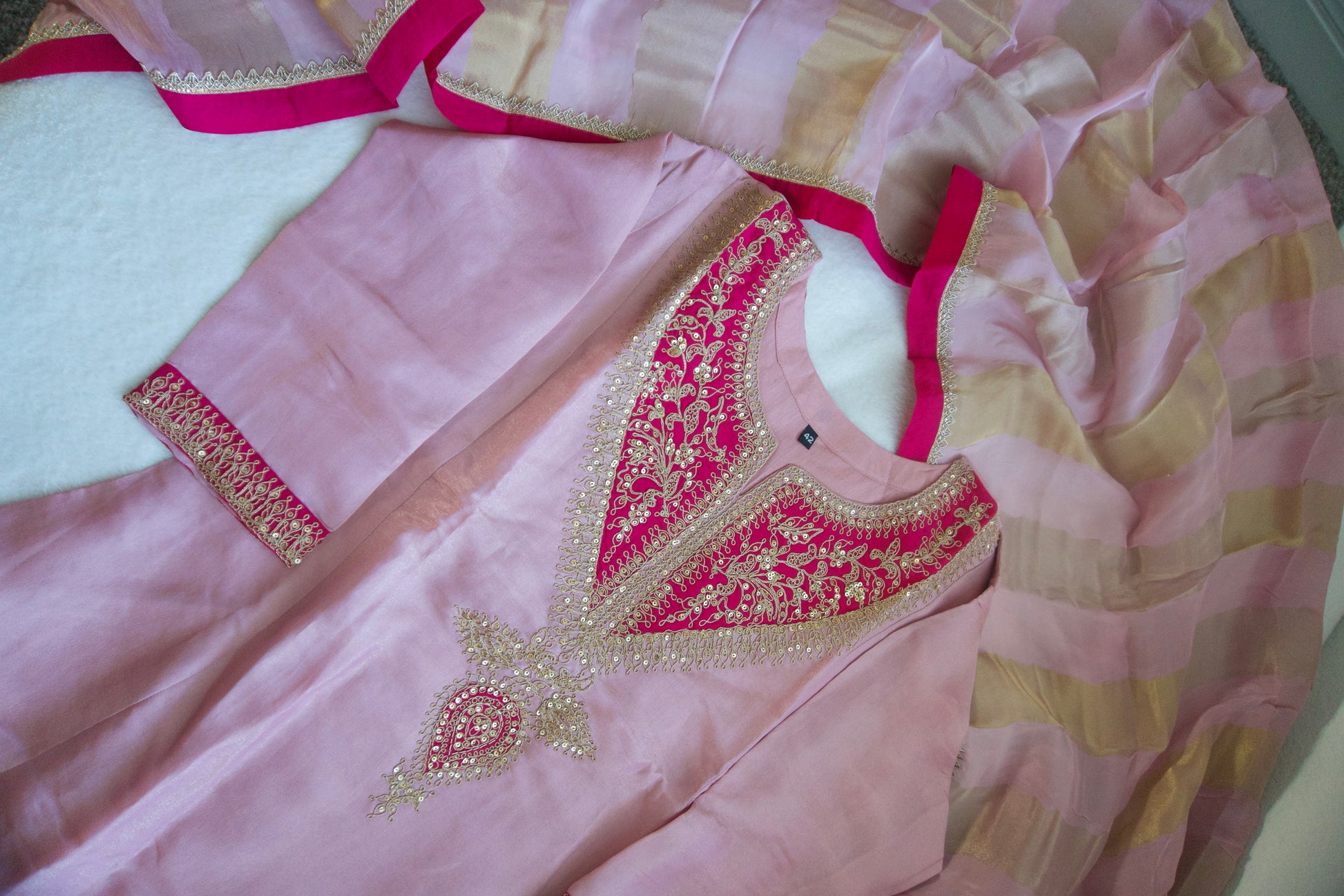Baby pink tissue A-line kurti set with gorgeous tissue dupatta