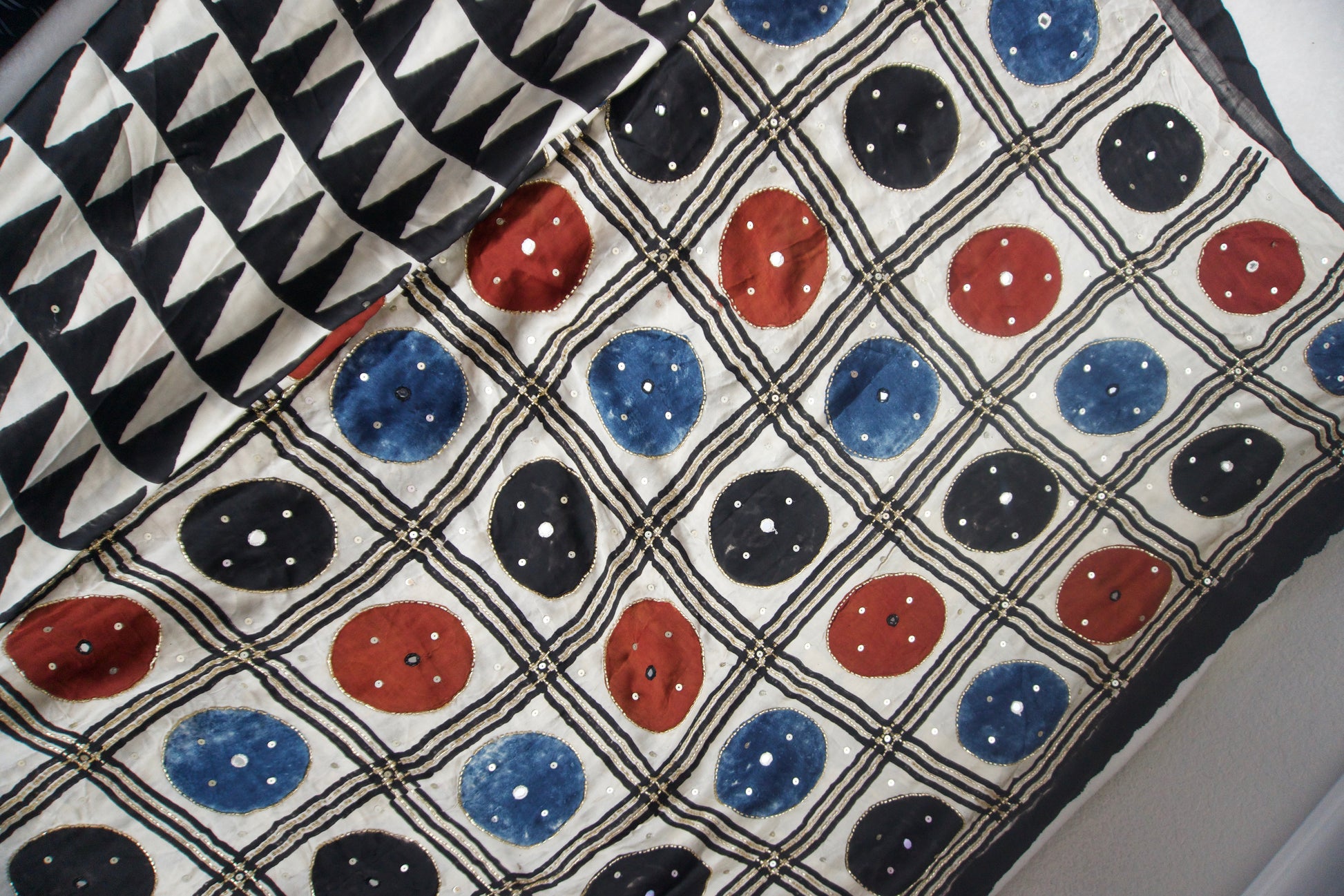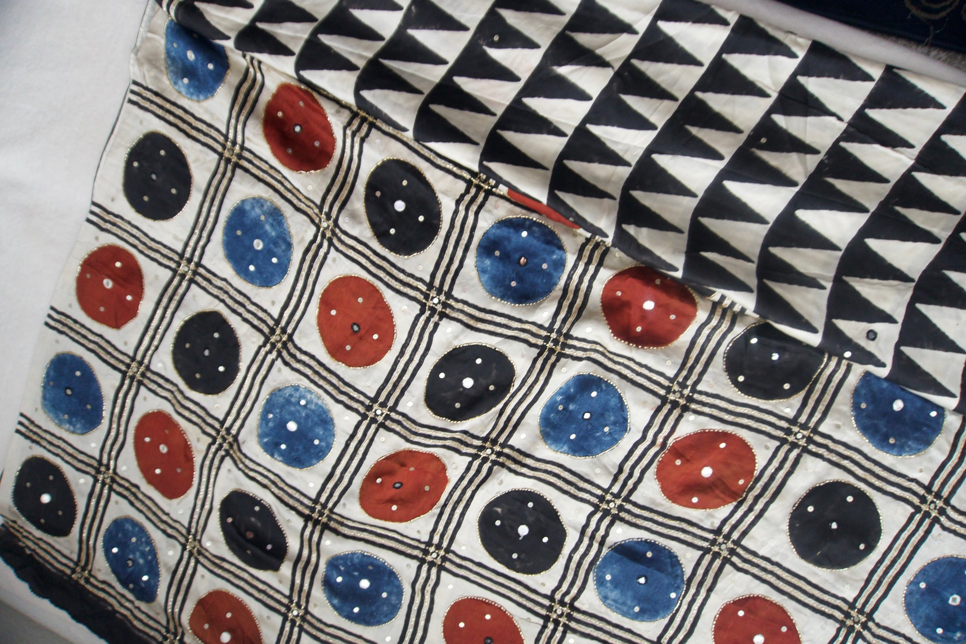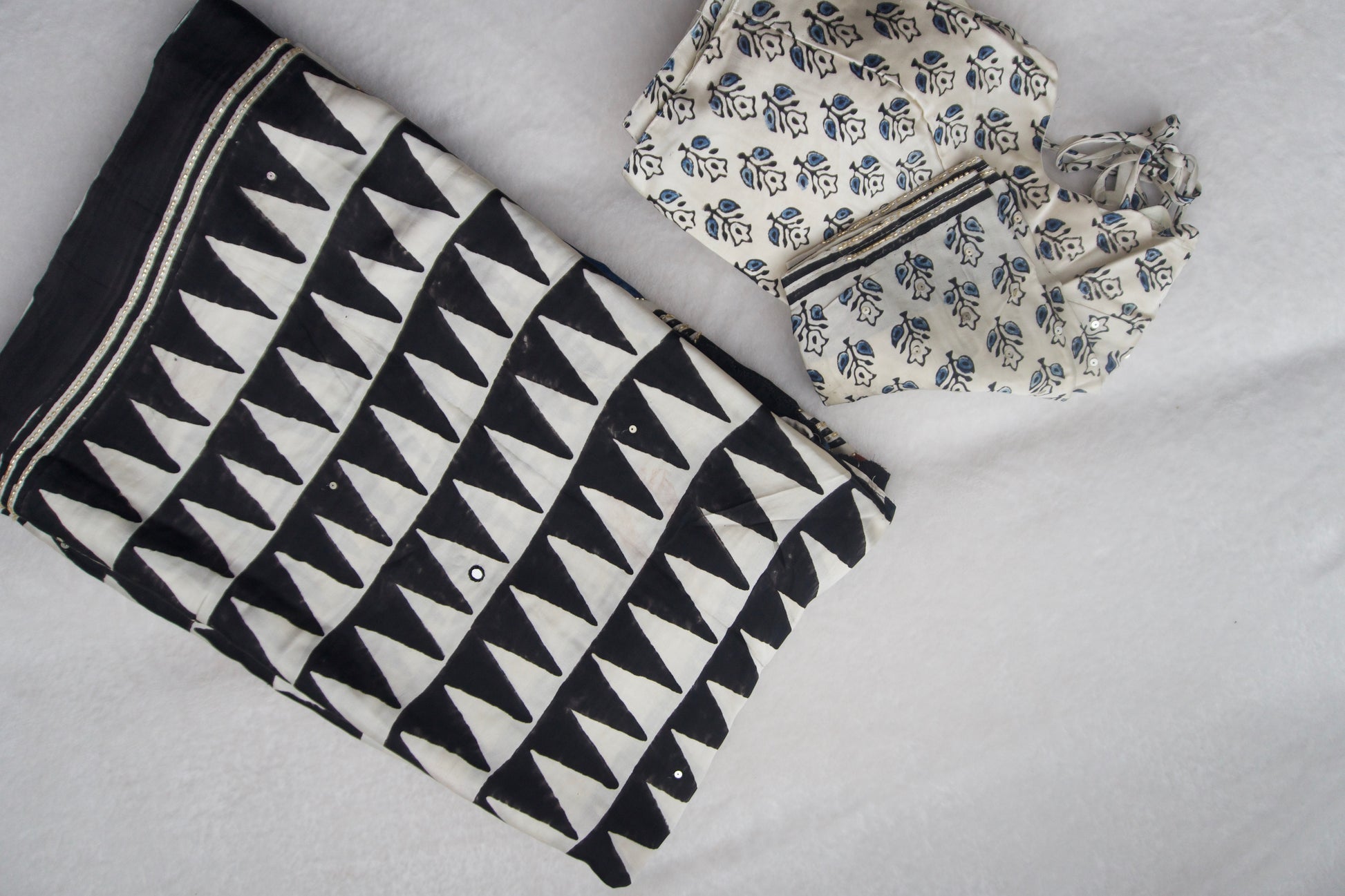 Black Ajrakh Modal Silk Handwork Saree - Triangles Pattern