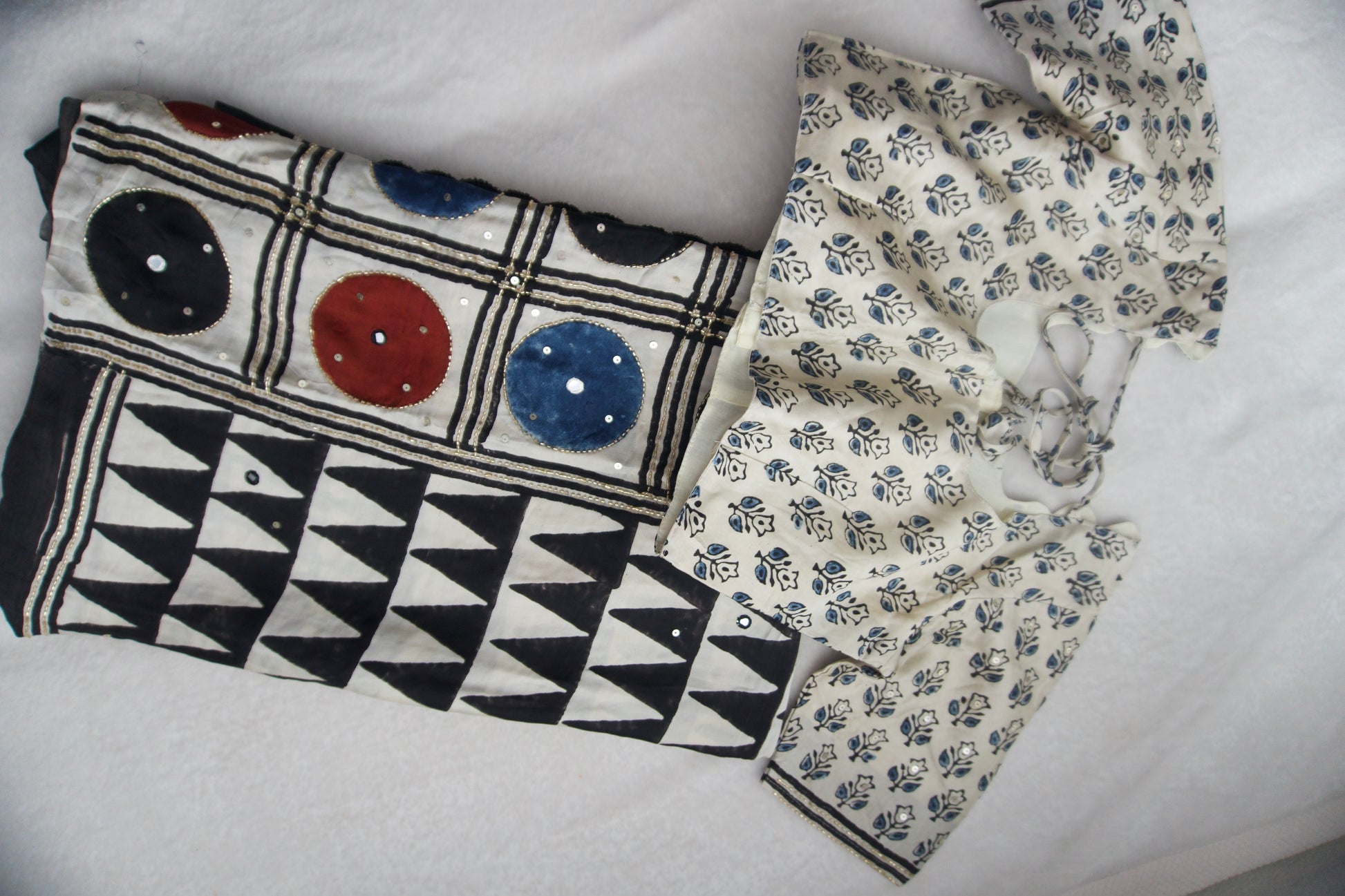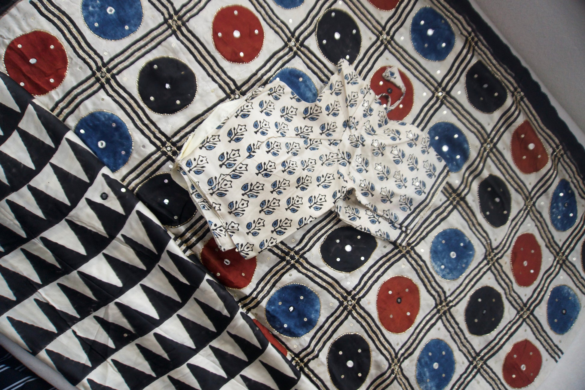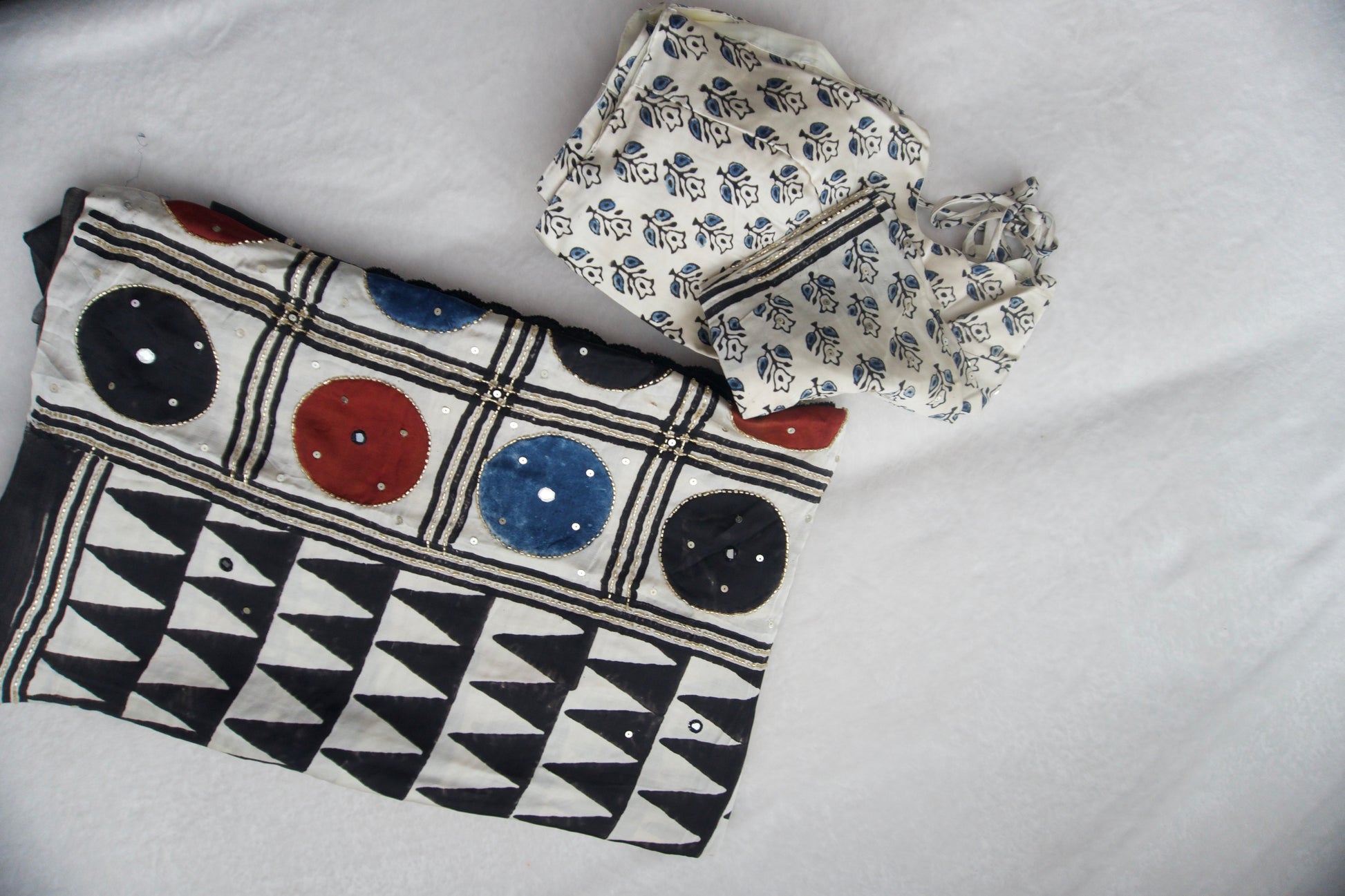 Black Ajrakh Modal Silk Handwork Saree - Triangles Pattern