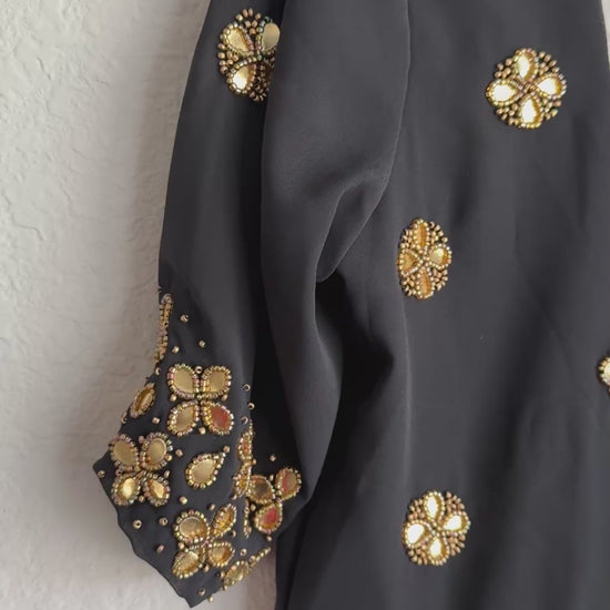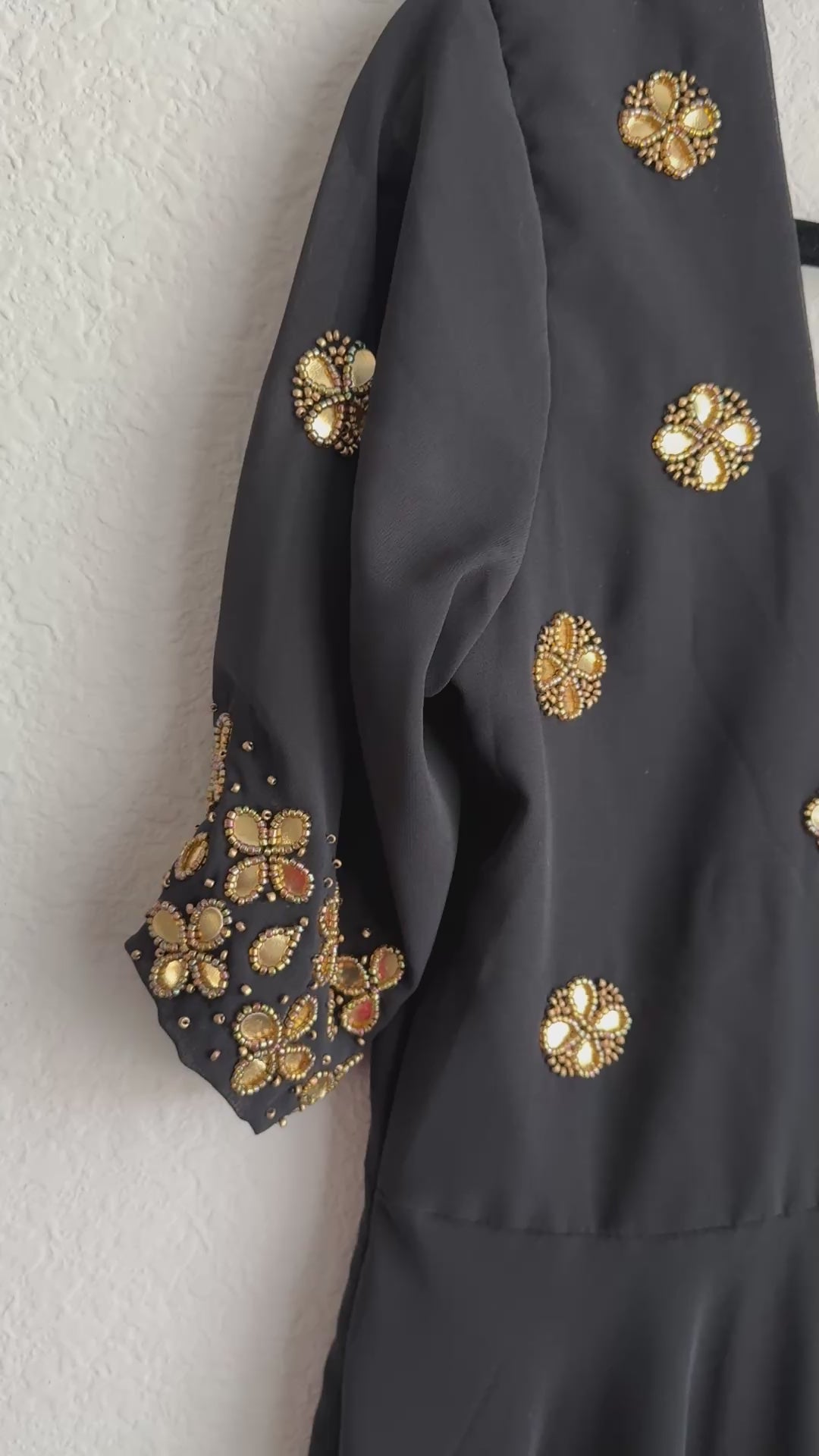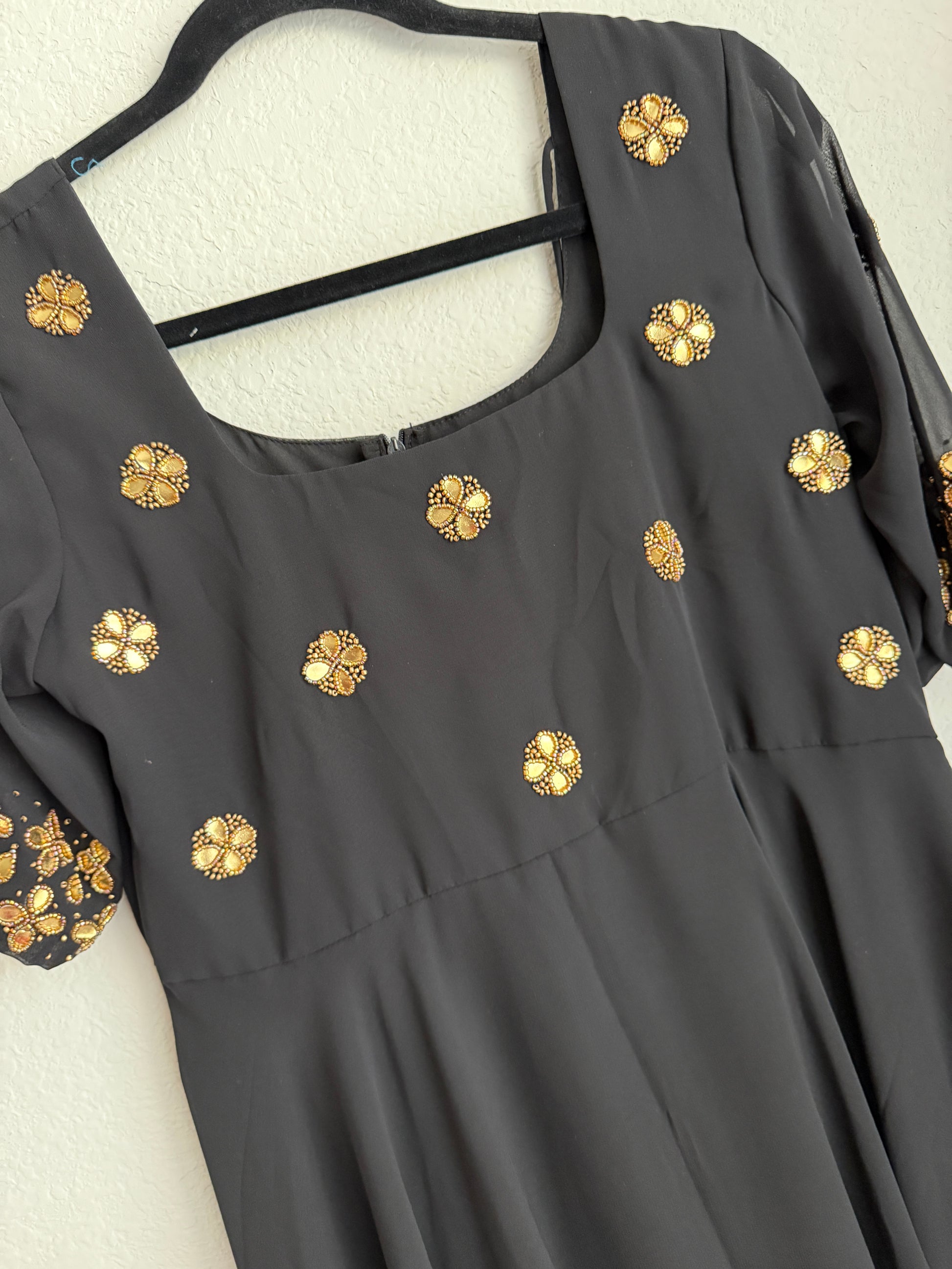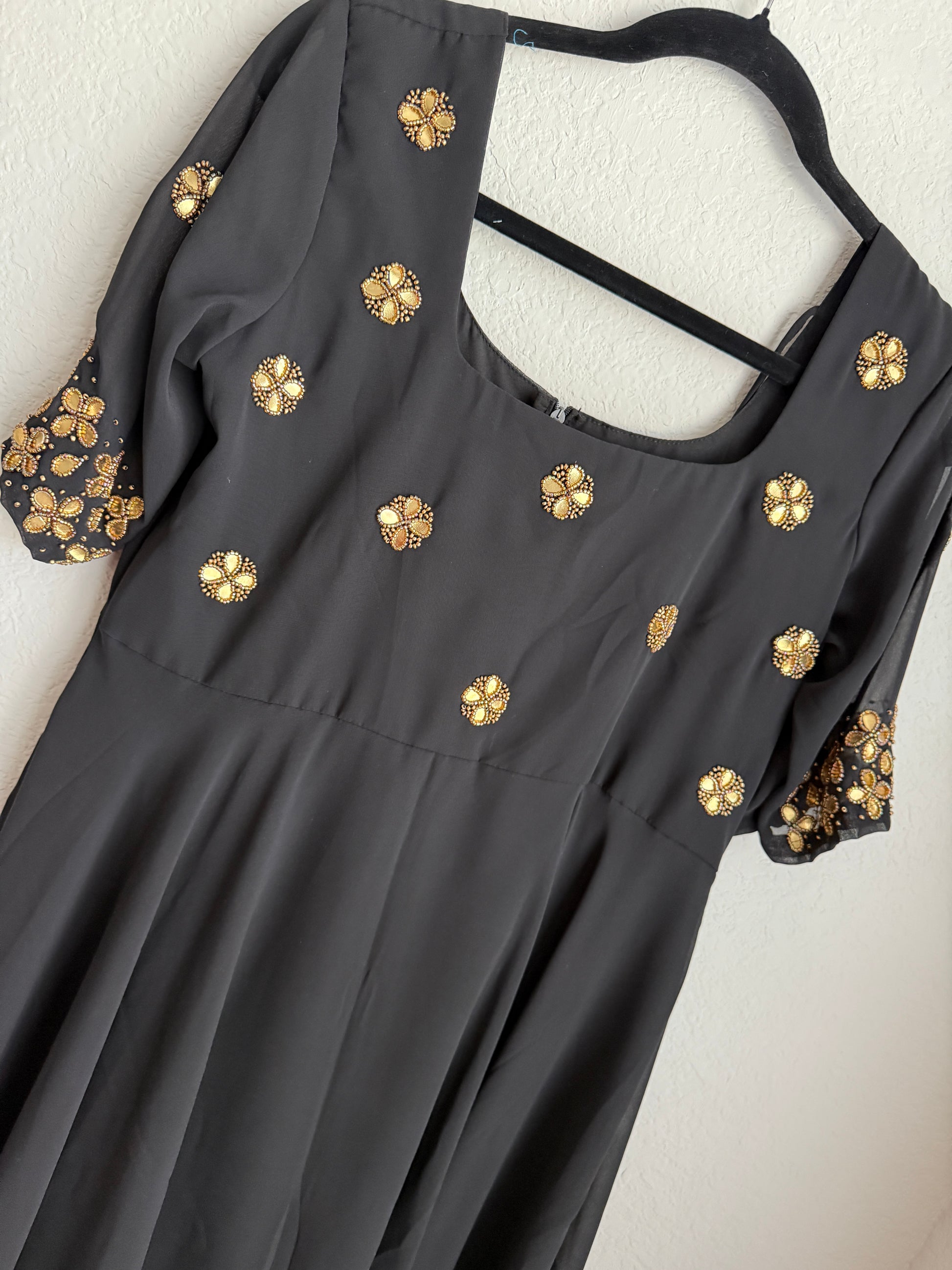 Black Georgette Foil Maggam Work Heavy Flared Designer Anarkali Tunic
