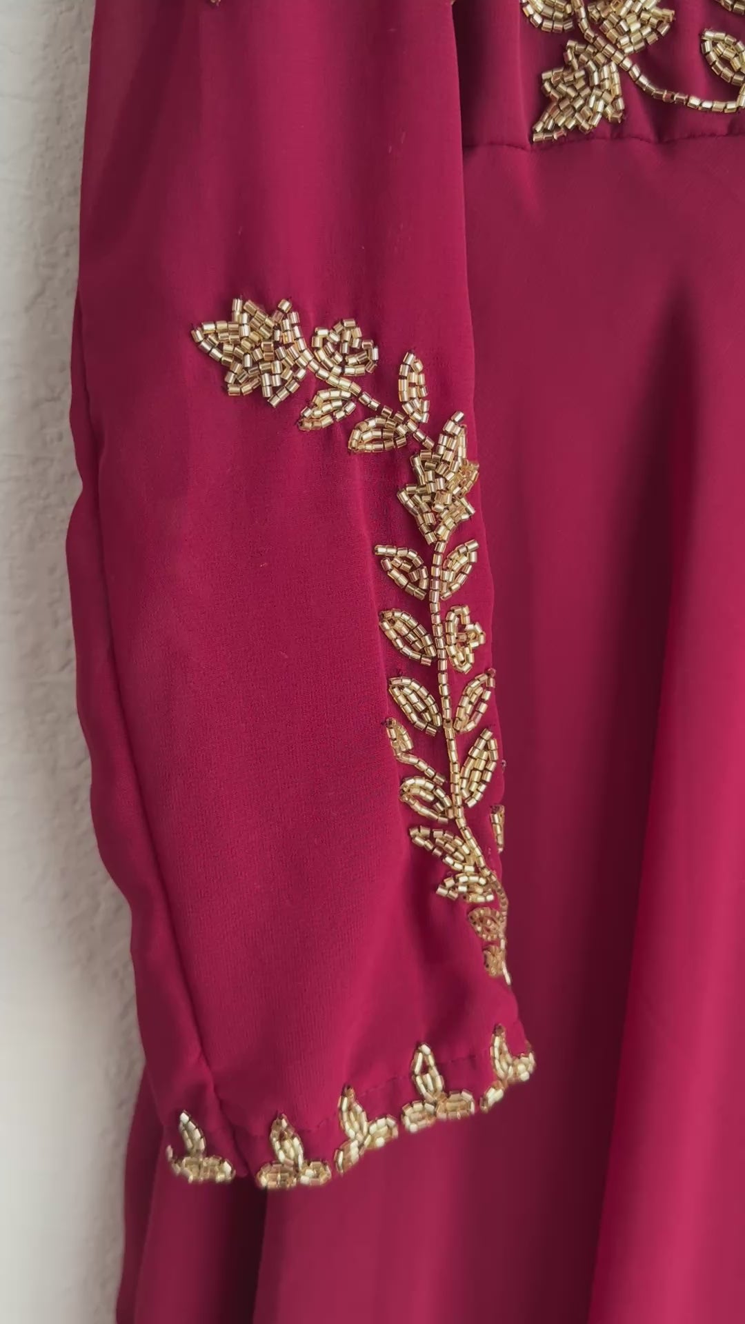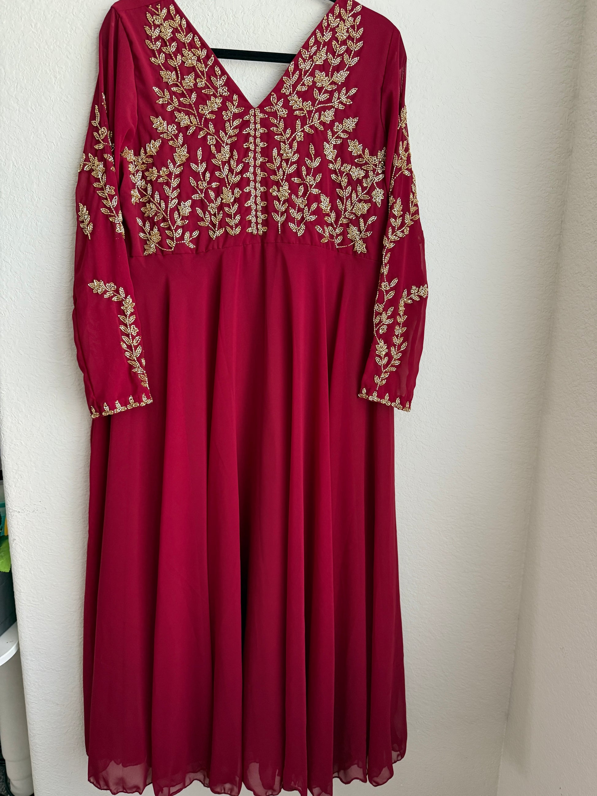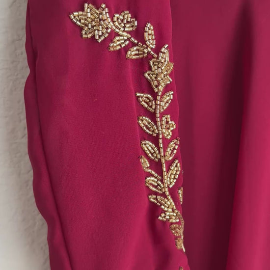 Maroon maggam work georgette heavy flare full sleeve anarkali tunic