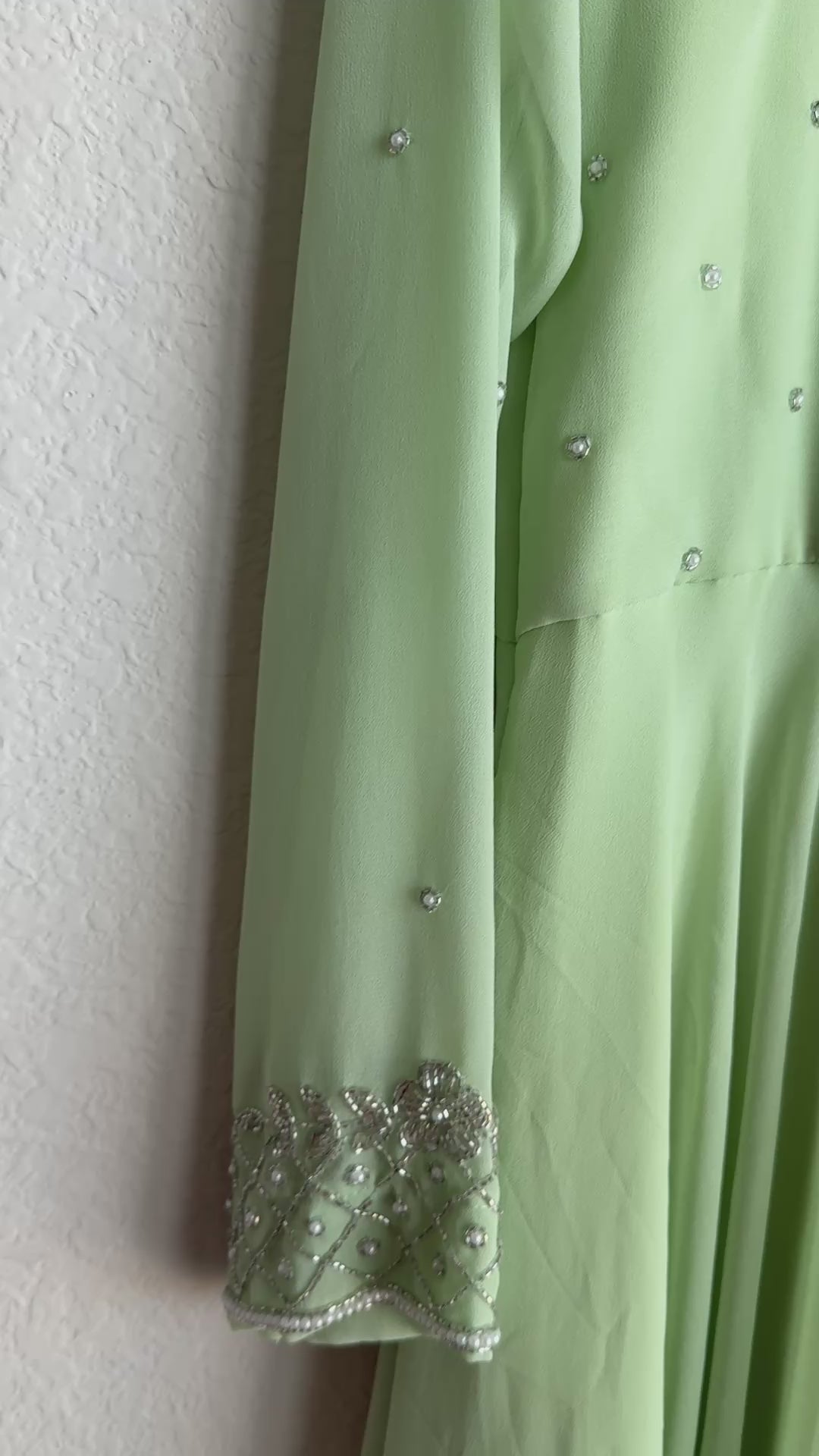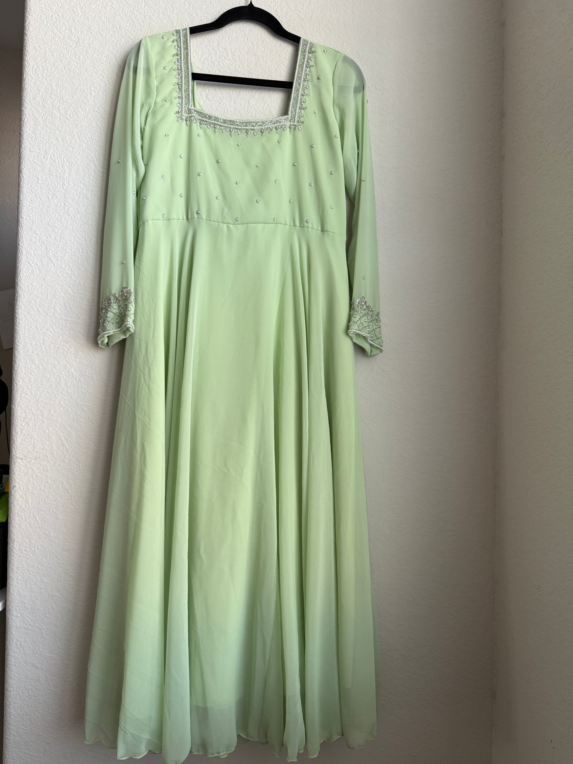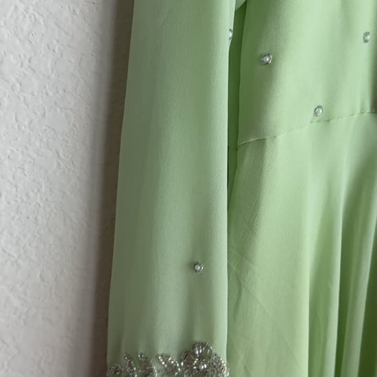 Pista green maggam work georgette heavy flare anarkali tunic