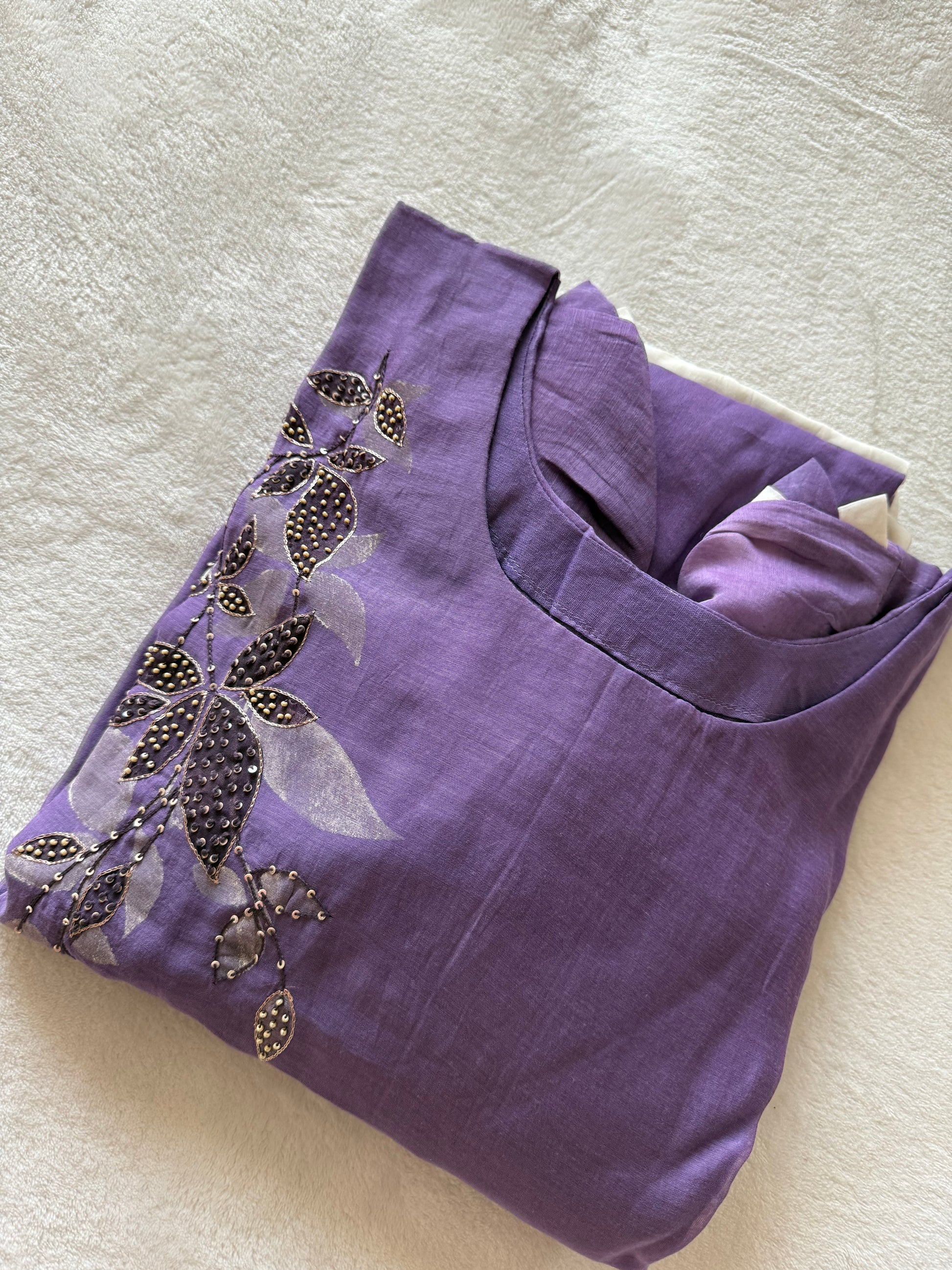 Pure mul chanderi handwork applique work aline suit
