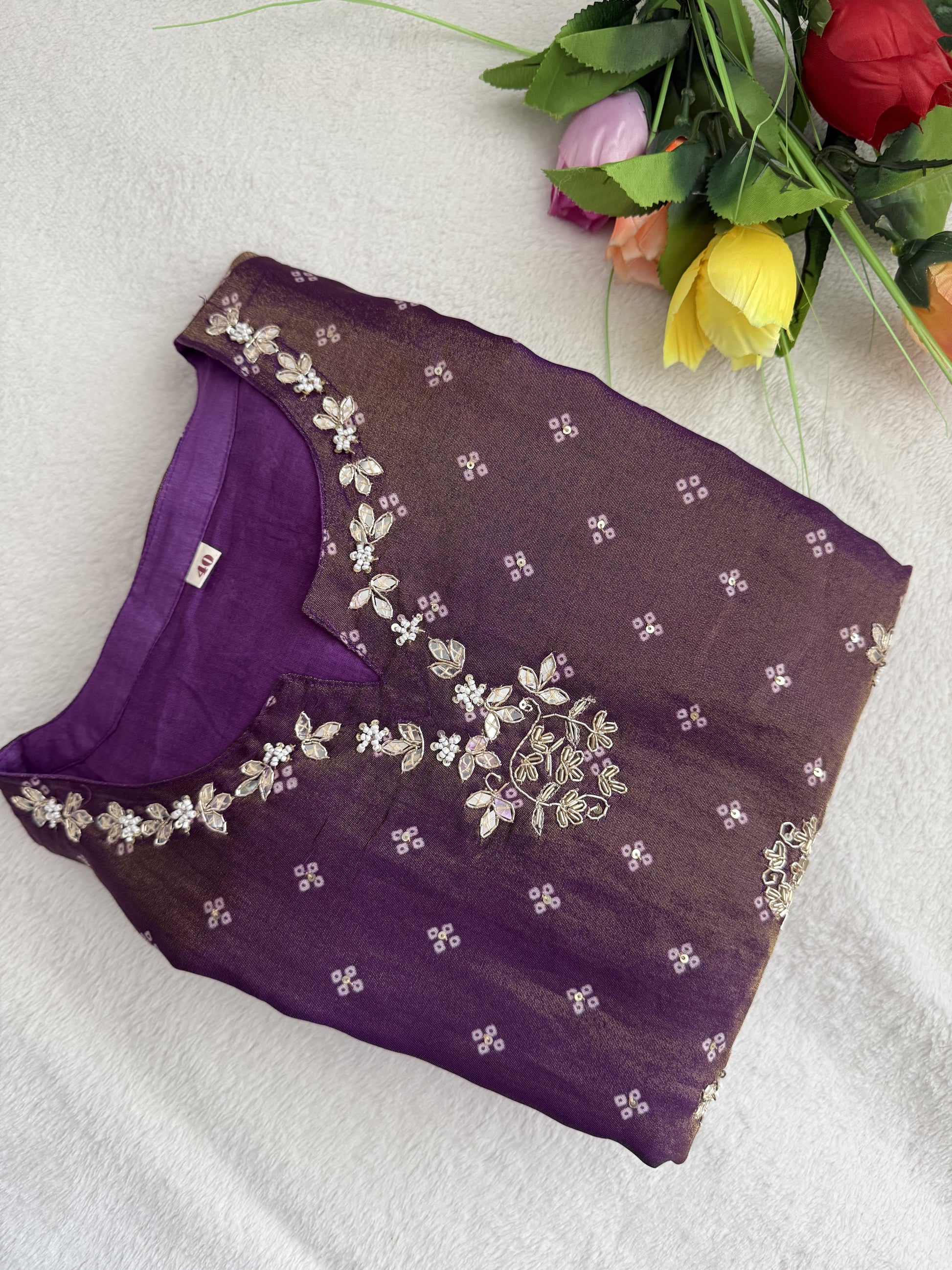 Purple tissue festive wear kurti set with organza dupatta